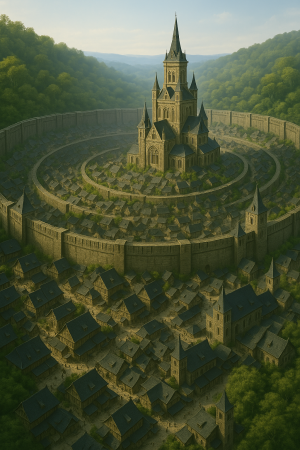 - Anel Exterior: onde vivem os comerciantes, artesãos, viajantes e mercenários. Mercados ao ar livre, tavernas e arenas de duelo são comuns.